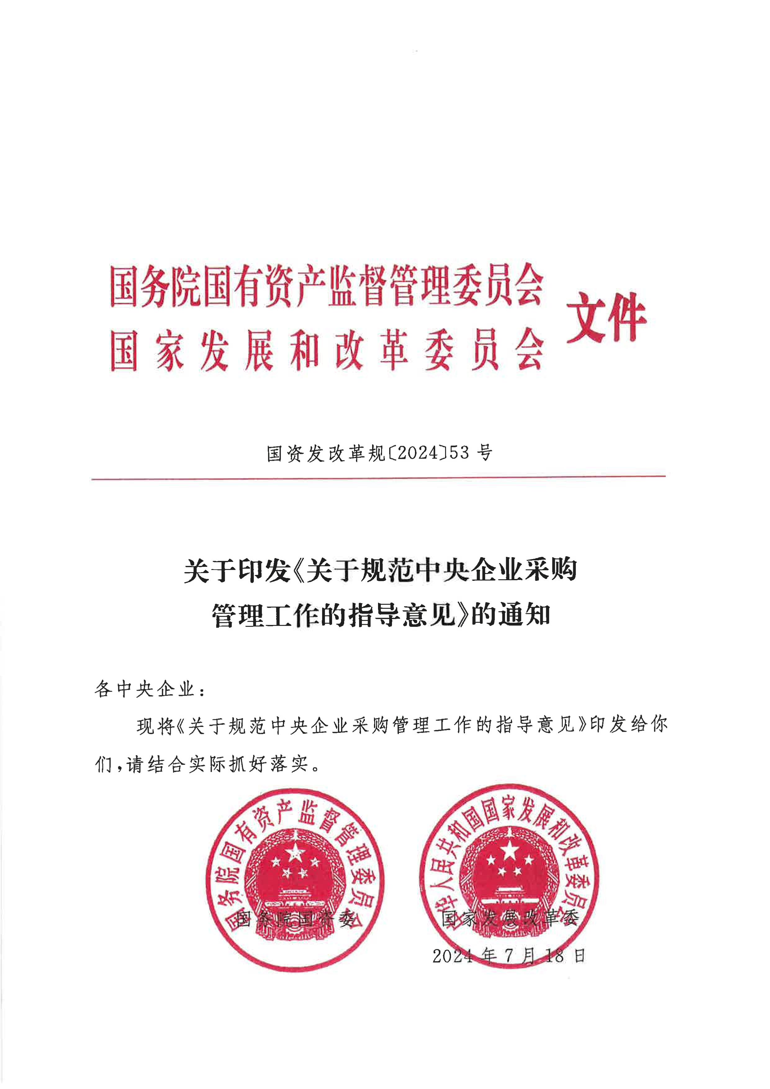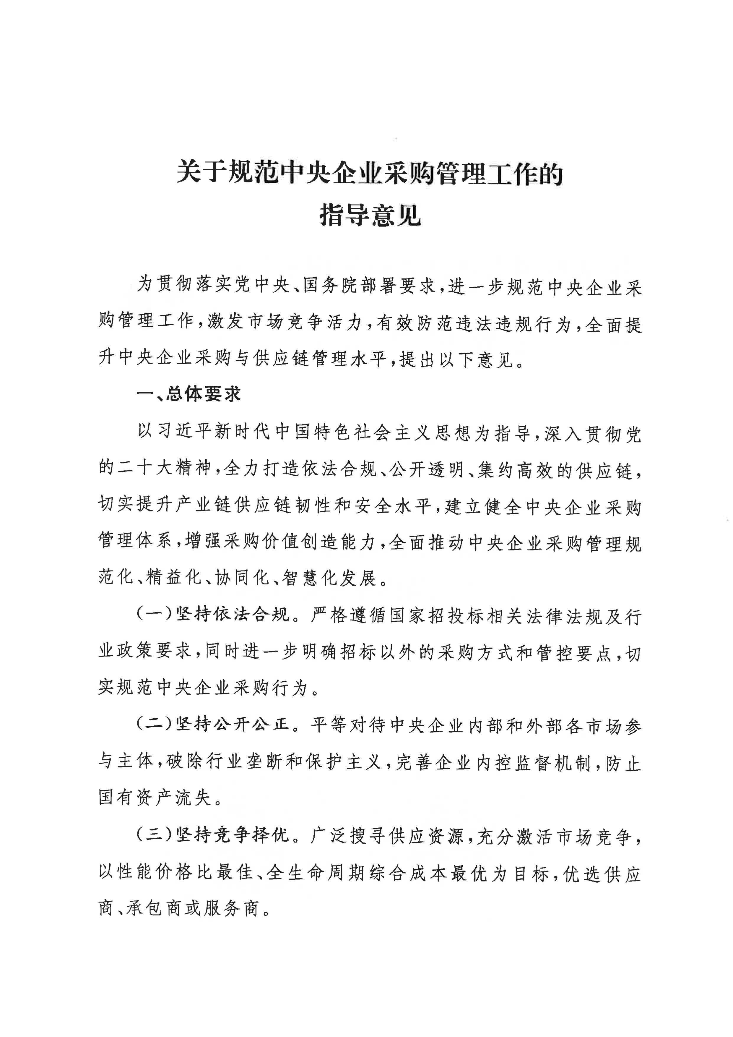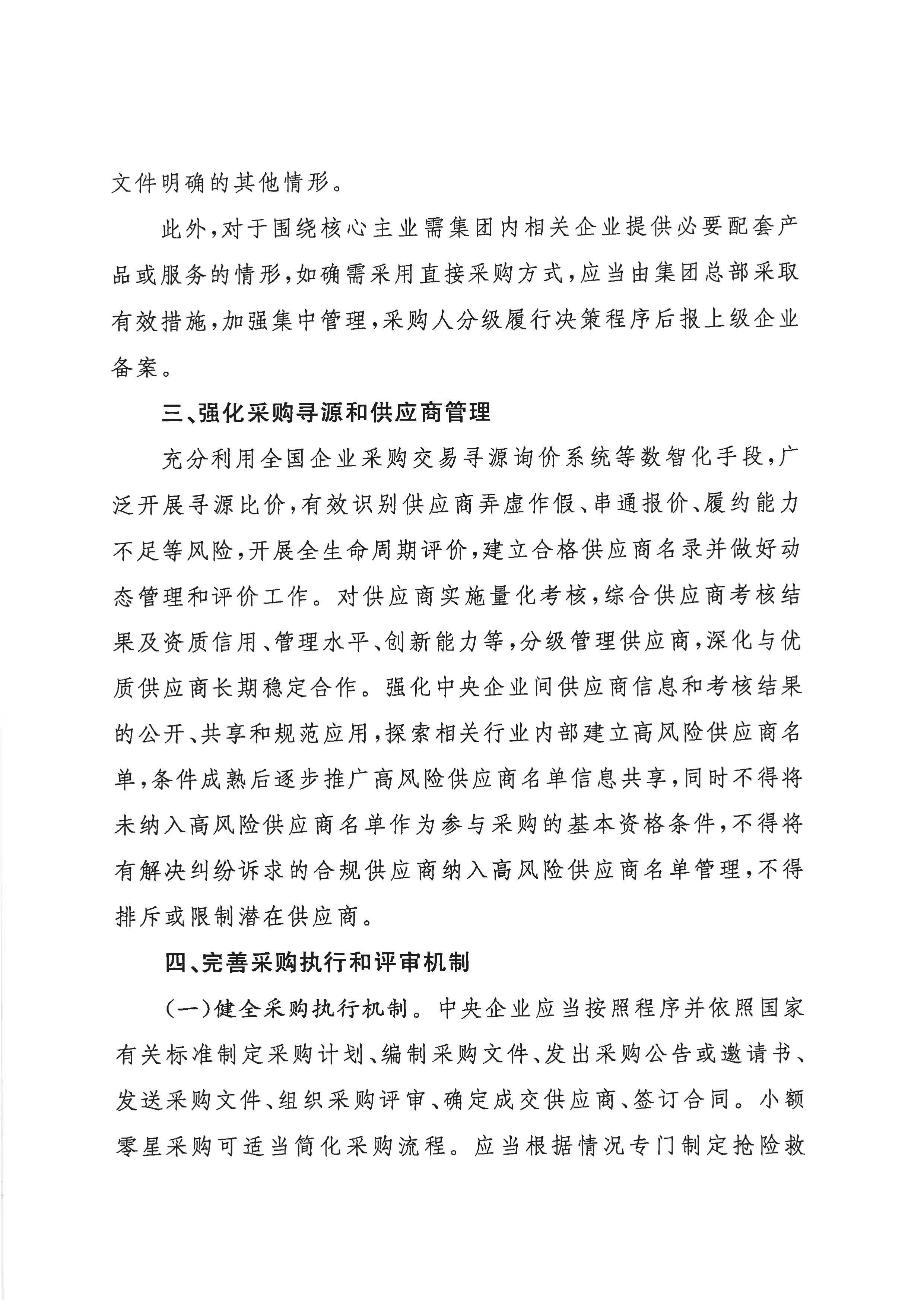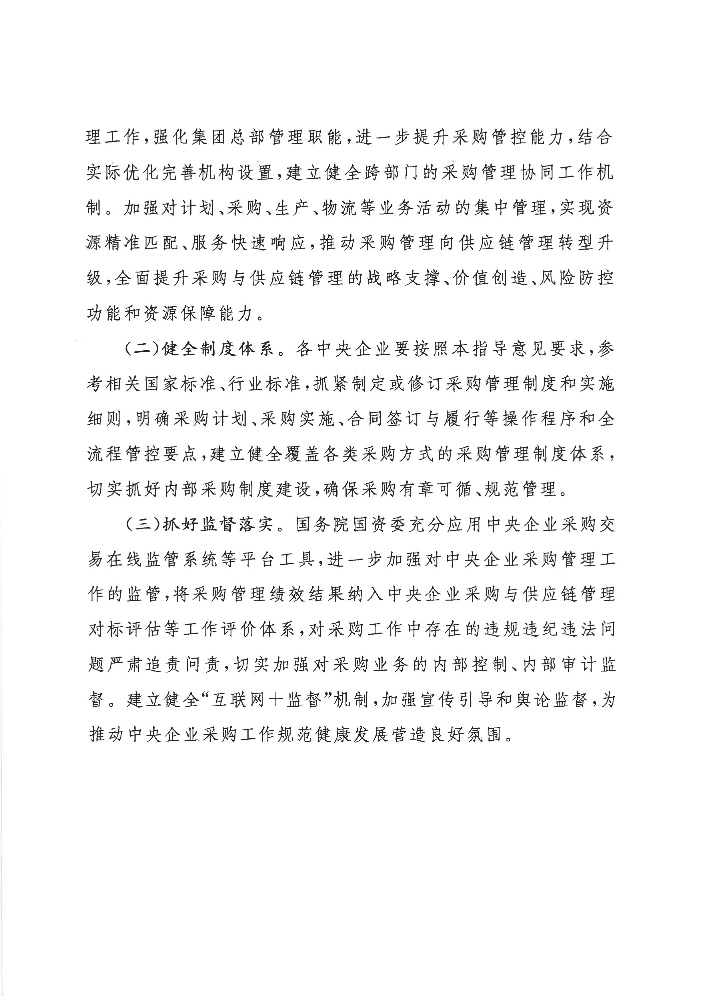 關于印發(fā)《關于規(guī)范中央企業(yè)采購管理工作的指導意見》的通知